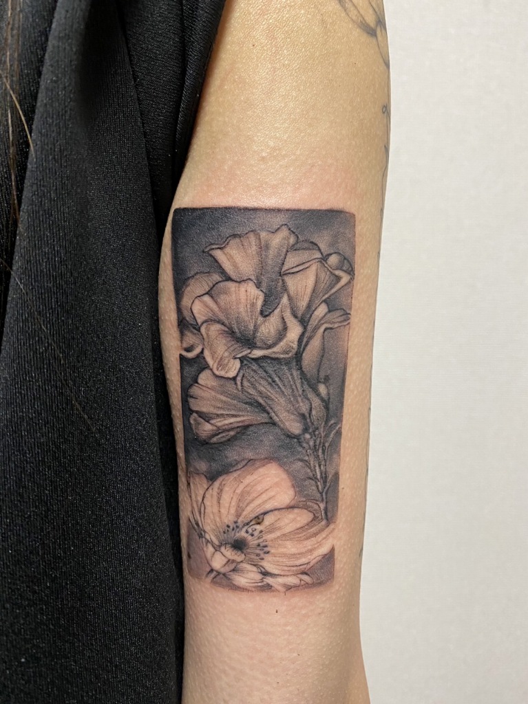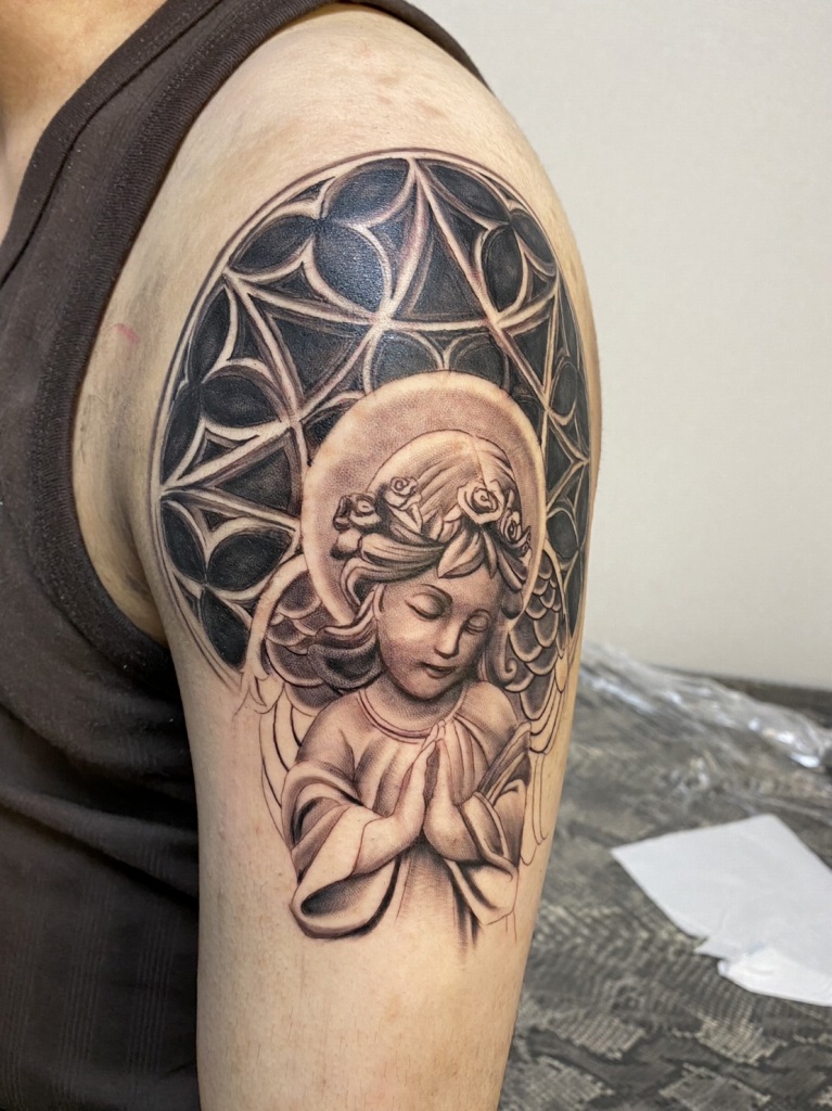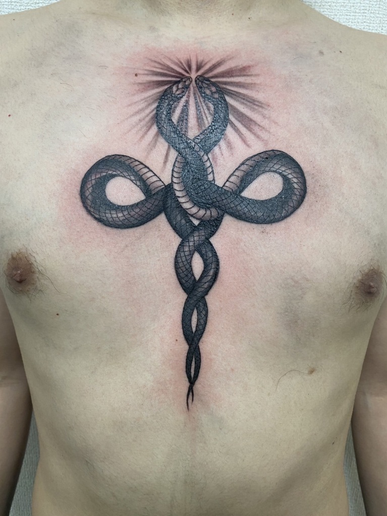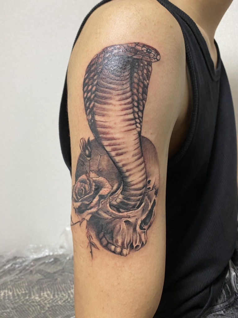 古いタトゥーの上に新たなモチーフを彫ることで過去のリフレッシュを行います。 もっと見る